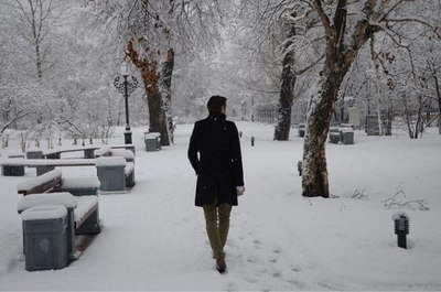 Прощальным снегопадом в феврале.